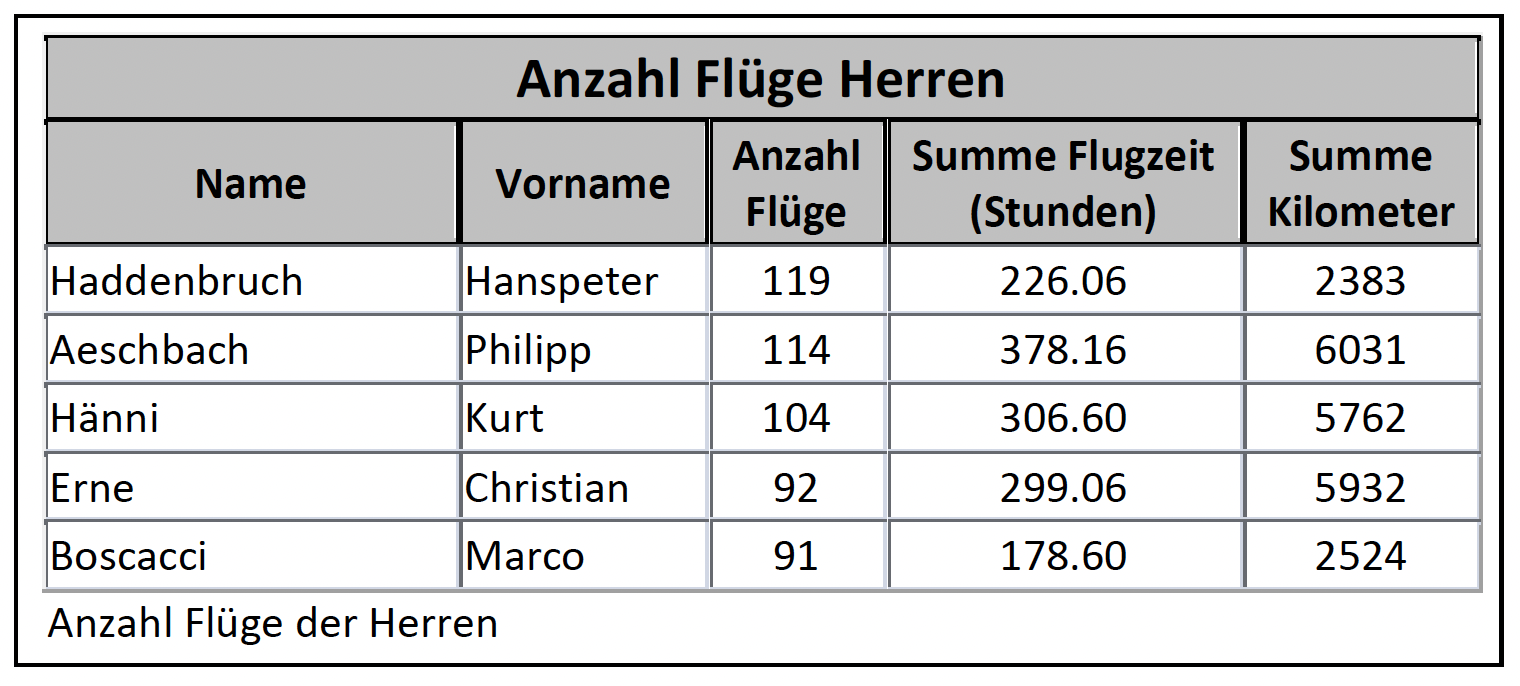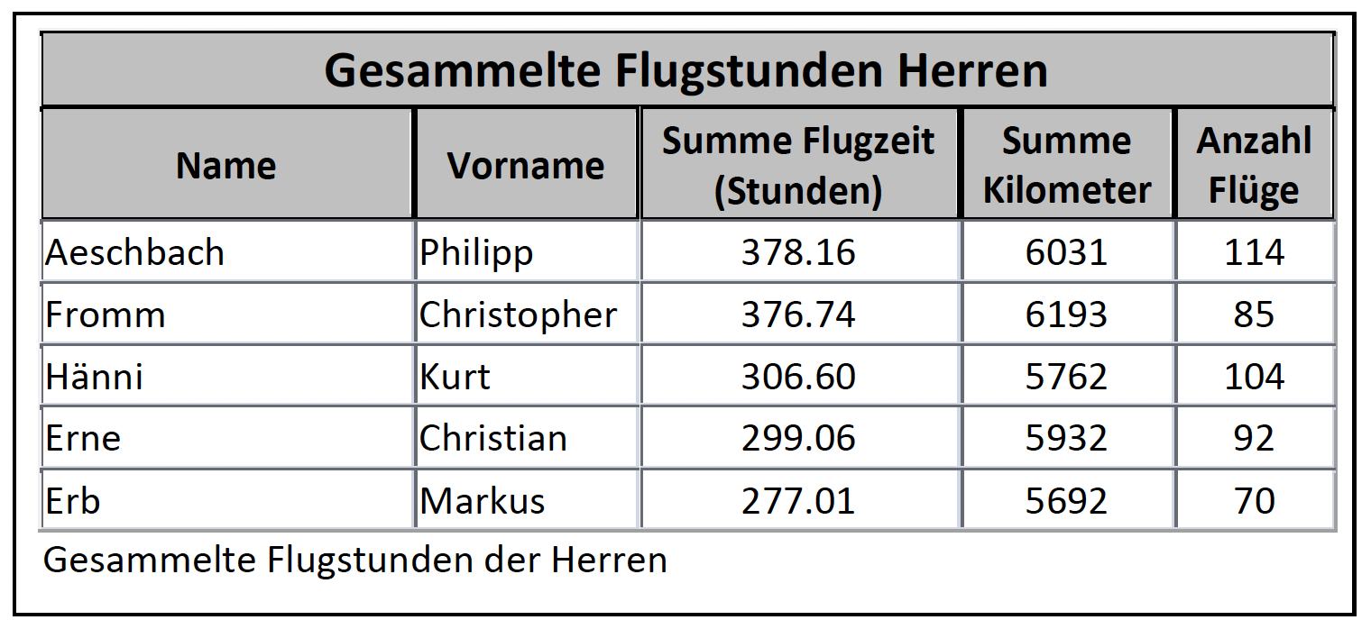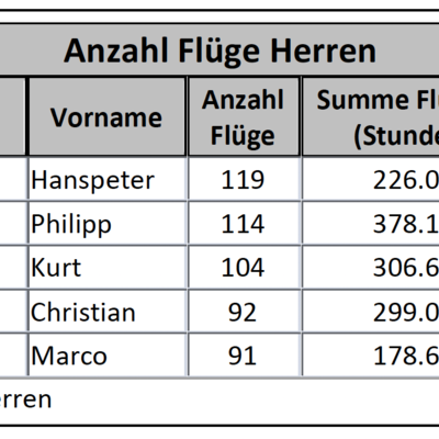 Der milde Frühling und der extrem warme und trockene Sommer bescherten uns Thermikjunkies eine phantastische Saison. Die vielen guten Flugtage hätten unbeschwert genossen werden können, wären sie nicht eine Folge des Klimawandels. Die guten Bedingungen führten zu einem regen Flugbetrieb: 299 Flugtage, darunter 71 Tage mit Tagessummen über 5'000 km. 157 Pilotinnen und 2'028 Piloten nahmen am XContest teil, wobei 32 Pilotinnen und 345 Piloten erstmals dabei waren. 25'505 Flüge summierten sich auf 1'138'635 km, womit erstmals die Millionengrenze geknackt wurde. Der Beitrag der Damen stieg auf 68'889 km. Für diese enorme Strecke waren die Pilotinnen und Piloten 66'886 Stunden in der Luft, zum Vergleich ein Jahr hat 8'760 Stunden.